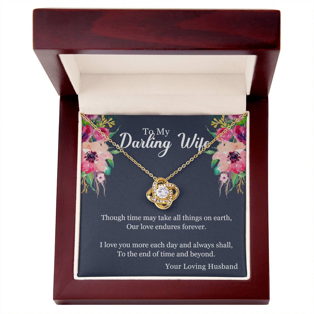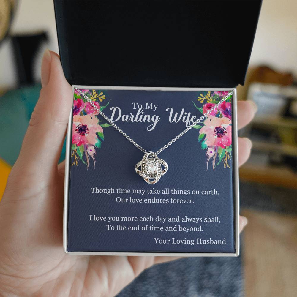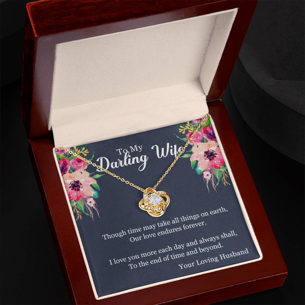 Imagine her reaction receiving this beautiful Love Knot Necklace. Representing an unbreakable bond between two souls, this piece features a beautiful pendant embellished with premium cubic zirconia crystals. Surprise your loved one with this gorgeous gift today!